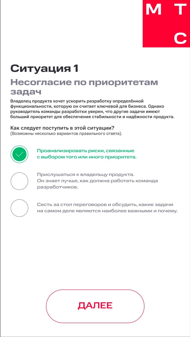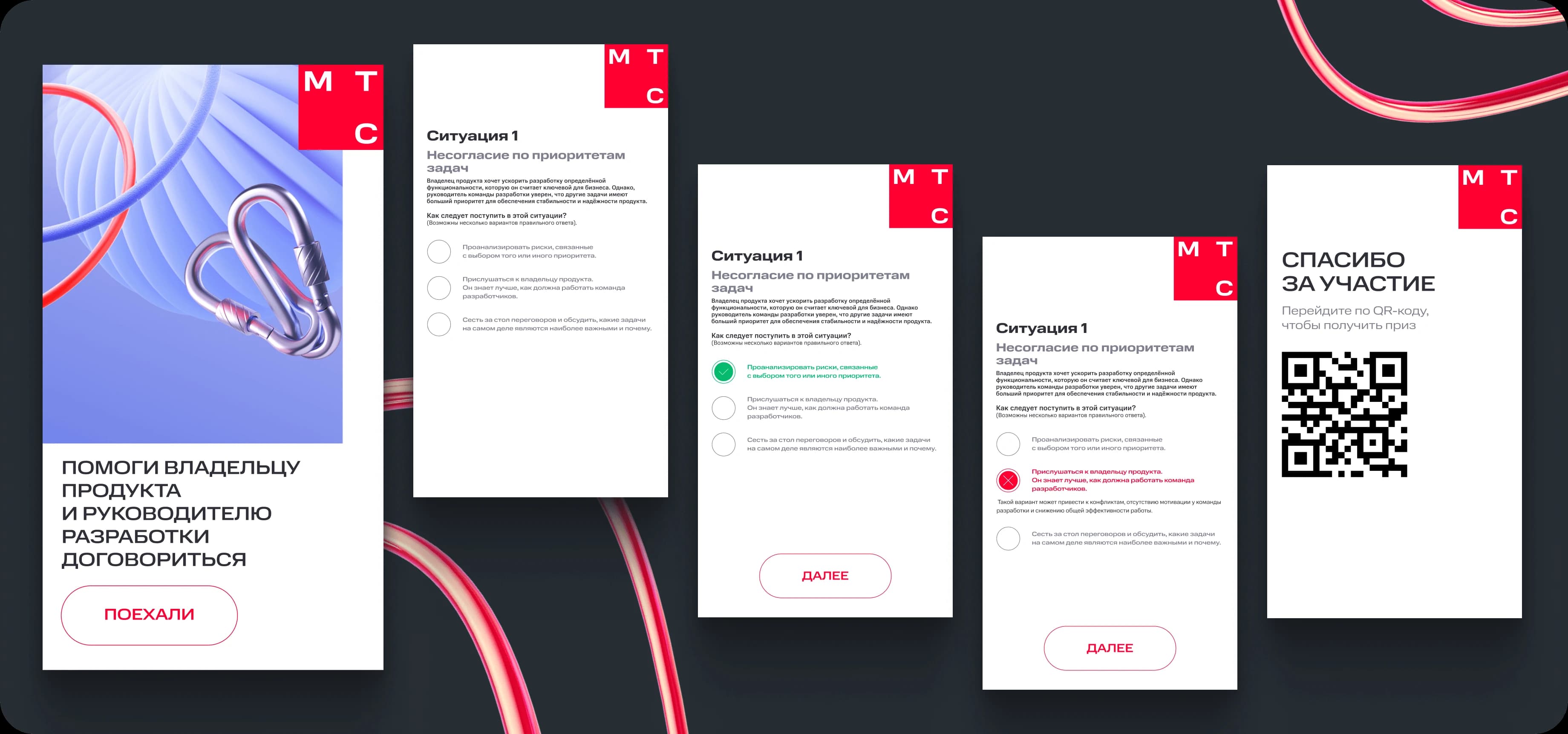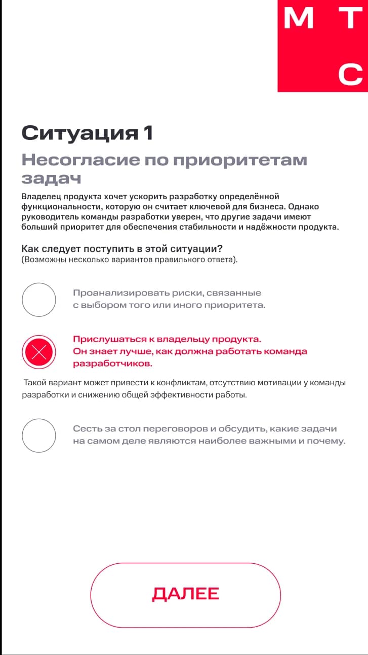Приложение знакомит участников с различными ситуациями, которые могут возникнуть между собственником продукта и разработчиком.