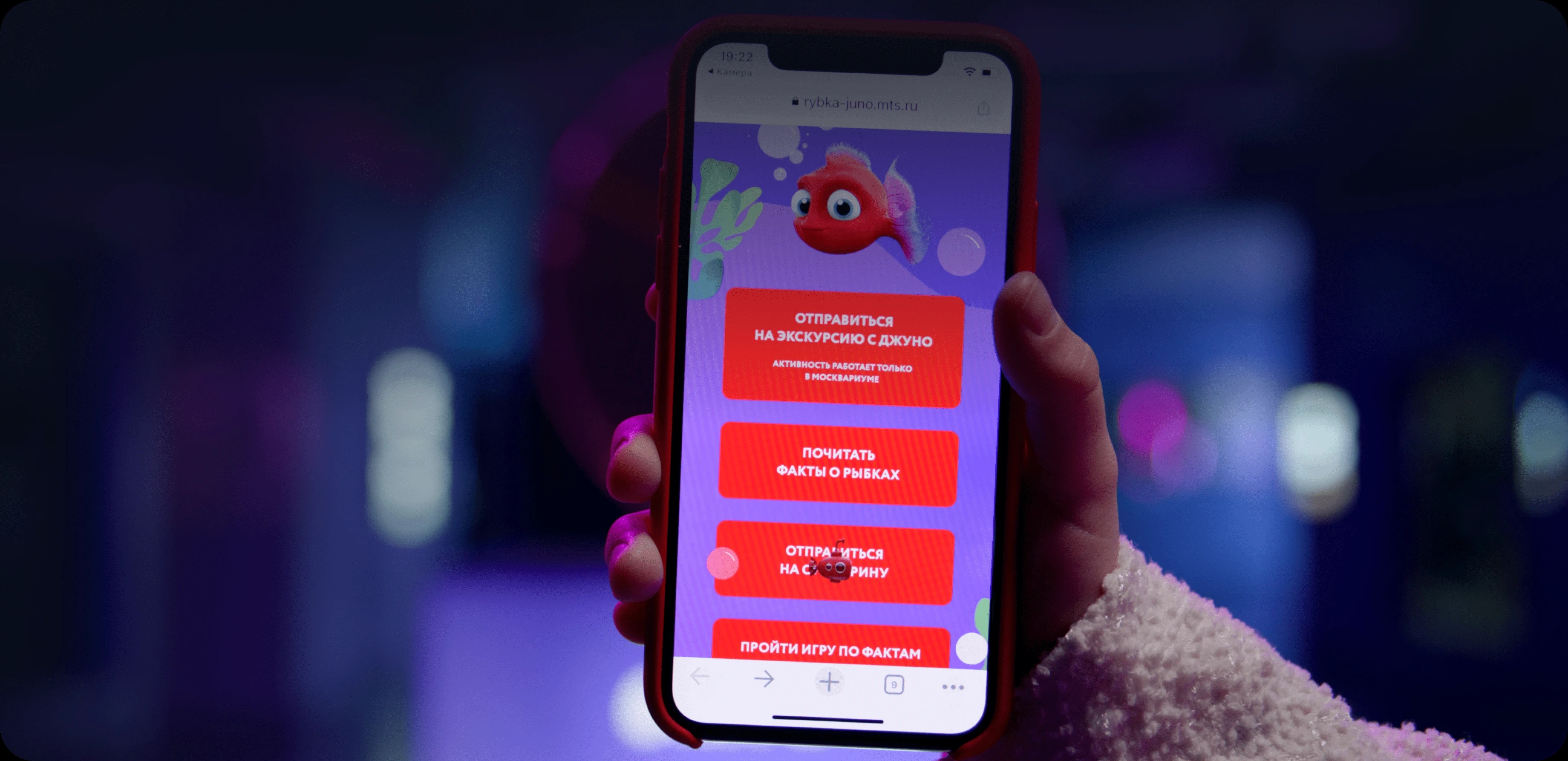МТC и Москвариум реализовали бесплатный образовательно‑развлекательный проект с виртуальной рыбкой Juno. Посетители могли познакомиться с подводными обитателями морских глубин и водоемов с помощью веб‑инструментов, а технология WebAR погружала пользователей в увлекательное путешествие.