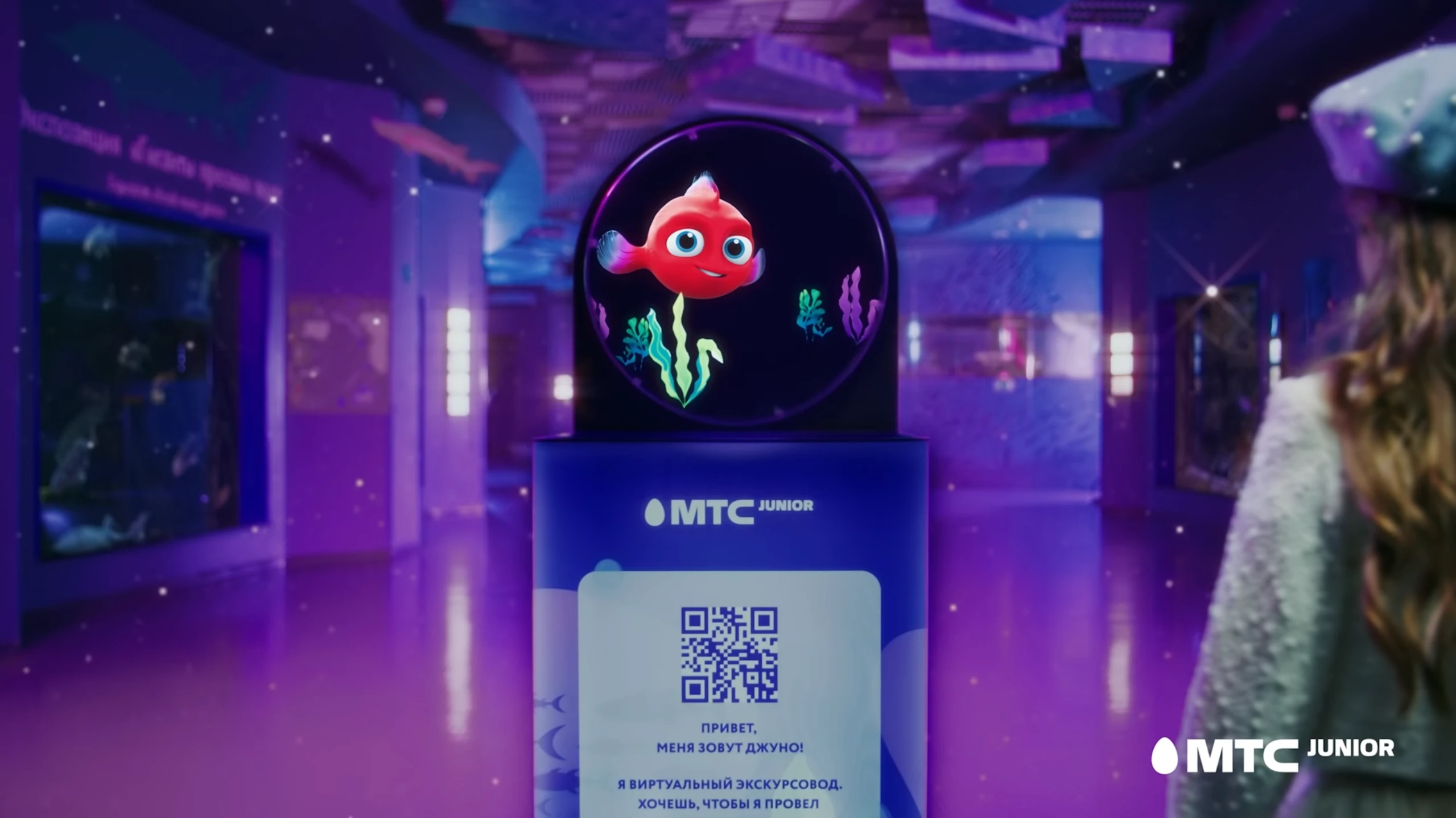 МТC и Москвариум реализовали бесплатный образовательно‑развлекательный проект с виртуальной рыбкой Juno. Посетители могли познакомиться с подводными обитателями морских глубин и водоемов с помощью веб‑инструментов, а технология WebAR погружала пользователей в увлекательное путешествие.